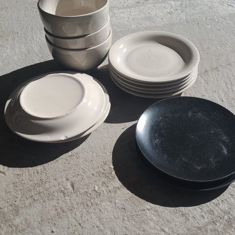 Porslin och glasskålar tallrikar blandat set