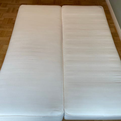 Madrasserna är stabila, bekväma och passar perfekt för enkelsäng eller tillsammans som en dubbelsäng pă 180x200 cm. Praktiskt om man vill ha två separata madrasser men ändå bygga en större säng.