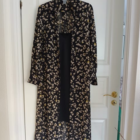 En mjuk, lång beige skjorta i kombination med en chiffongjacka, perfekt för sommaren med sina svala, vackra färger, ger dig en känsla av elegans.