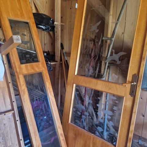 Inomhusdörr från början av 60-talet. Mått 202 cm x 75 cm. Glas mått 90 cm x 49 cm. Högerhängd. Skickar ej. Finns i Nacka.