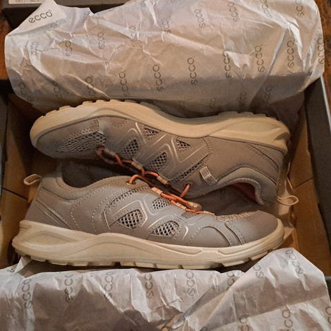 AMN sneakers i storlek 41. Skorna är vita med ljusa detaljer och snörning framtill. Ovandelen består av textil- och syntetmaterial med meshpaneler för ventilation. Yttersulan är i syntet/gummi med mönstrad undersida för grepp. Modellen är avsedd som fritids- eller träningssko och kan användas för olika typer av övriga sportaktiviteter eller vardagsbruk.
