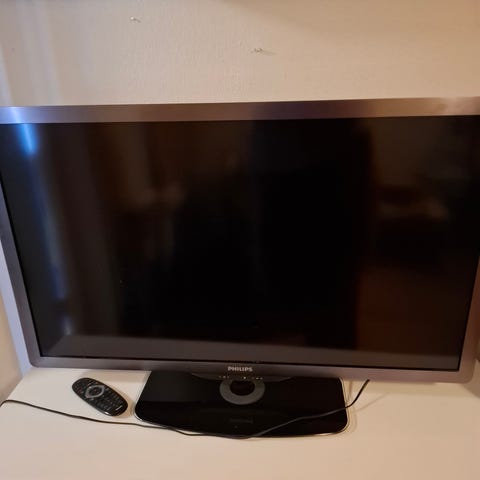 Samsung tv med platt tv med borras stativ och vägg fäste. Fjärrkontroll medföljer. Allt funkar som det ska. Det saknas skruvar till fotfästet men de behövs inte. Det funkar bra utan.