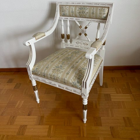 Säljer ett par unika hörnstolar i klassisk stil. Fina tillsammans som en liten soffa eller var för sig som dekorativa stolar.