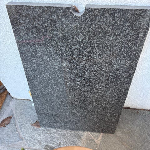 rejäl och tung granit skiva mått 1,5 m lång 1 m bred och 4,5 cm tjock, rundade hörnlämplig för köksö eller disk