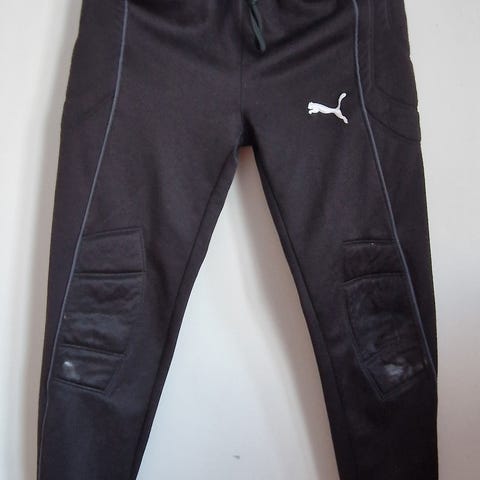 Adidas (storlek S) och Uhlsport (storlek 152 cm) målvaktsbyxor i svart färg. Båda byxorna har vadderade skyddspaneler över knän och lår, samt resår i midjan med dragsko för justerbar passform. Byxorna är i mjukt, stretchigt material som ger rörelsefrihet vid träning och match. Passar som skyddsbyxor för målvakt vid fotbollsspel utomhus eller inomhus. 50 kr styck.