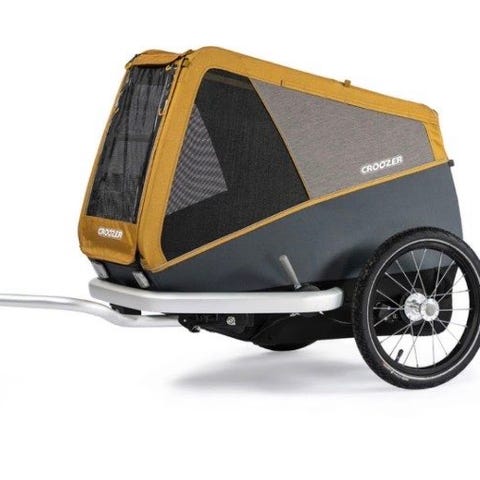 Helt oanvänd cykelvagn/ cykelsläp för hundar upp till 20kg. Den har två kopplingar för snabbt byte av dragcykel, "hytten" är av vattenavvisande material, vagnen/ släpet har dragstångsfjädring, och är vadderad i botten. L 116 x B 52 x H 61 cm. Nypris ca 1200 kronor.