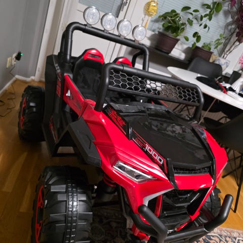Elbil av märket Rapid racer. Bilen har öppningsbara dörrar och LED belysning fram, inbyggd stereo med flera låtar, det går även att lägga in egna låtar med USB och Micro -SD ingång. Realistiska ljudeffekter.