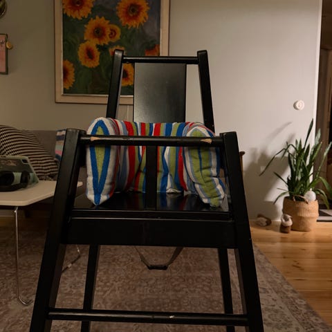 IKEA matstol för barn i svart utförande. Hög barnstol anpassad för matbord, med fotstöd och armstöd för ökad stabilitet. Passar för barn som kan sitta själva vid matbordet. Stolen är tillverkad i ett robust material som är enkelt att torka av och hålla ren. Kan användas i kök eller matrum som stadig sittplats för barn vid måltider och andra aktiviteter vid bordet.