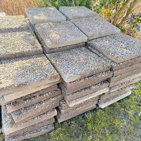 Begagnade takpannor i betong.