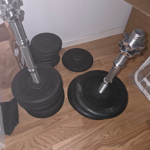 Hantlar med justerbara viktskivor i metall.