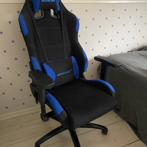 DXRACER gamingstol i svart och blått konstläder.