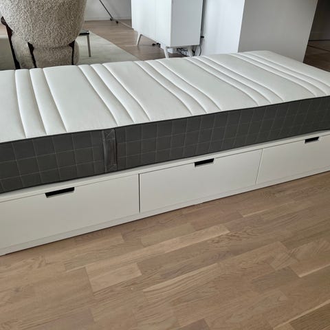 Sälja tillsammans med madrass Morgedal. Har alltid använts med bäddmadrass. Finns inga fläckar eller liknande.