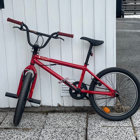 Säljer en BTwin Wipe 300 BMX. Solitt bygge i Hi-Ten stål och gjord för att tåla stryk – förstärkta dropouts, brett vevlager och 36-ekriga aluminiumfälgar som klarar hårda landningar.