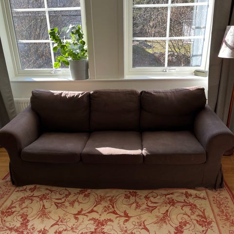Säljer en grå 3-sitsig soffa. Måtten är: