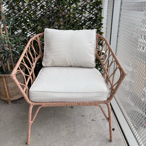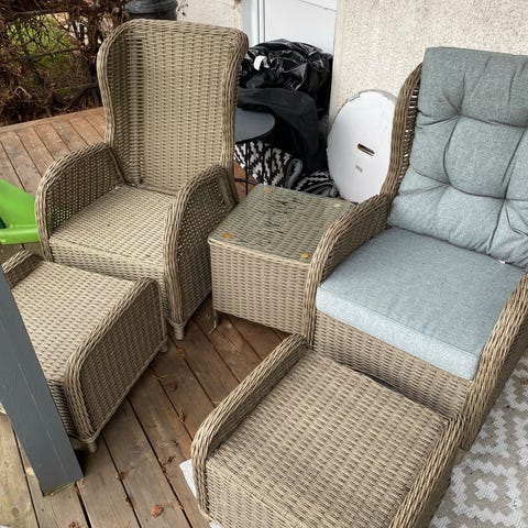2 st fåtöljer från Rusta i beige rotting. Det har spruckit lite högst upp på ryggstödet i övrigt bra skick. knappt använda.