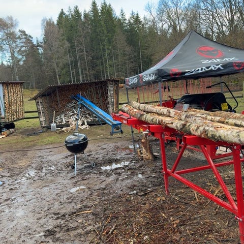 Kellfri vedtransportör 5 m. Går på 3 fas.