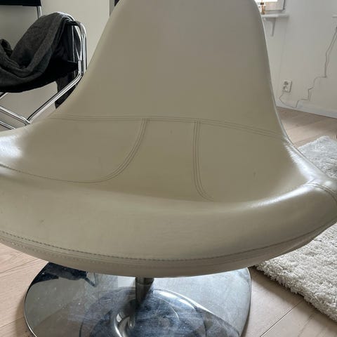 En bekväm fåtölj i skinn i varm brun ton skön sittkomfort.