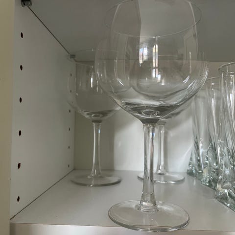 IKEA dricksglas i klarglas, äldre modell/form som inte säljs idag. Stapelbara för enklare förvaring i skåp eller på hylla.