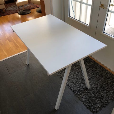 Vi säljer vårt skrivbord på grund av den renovering. Det har stått i sommarhuset och har kanske använts en månad totalt. Som nytt, Inga märken på skiva eller ben. Nypris 1695.