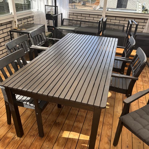 Trädgårdsgrupp bord och 4 stolar svart metall