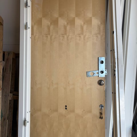 Innerdörr med karm med smideshandtag