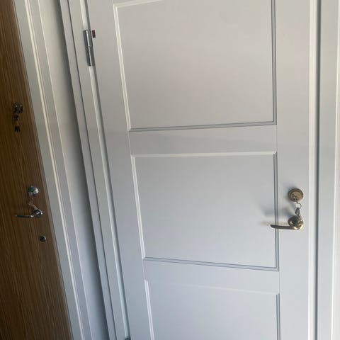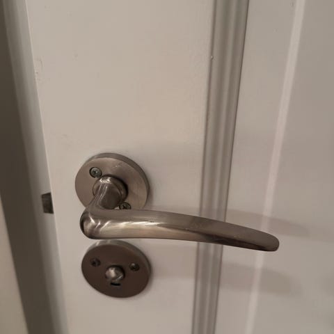 8 stycken handtag för innerdörrar, kompletta med handtag, rosetter och skruv för montering. 2 av dom har vred för toalett. Färg enligt bild.