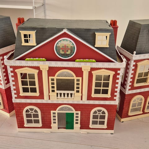 Schleich hus med flera rum och detaljerad inredning. Huset har två våningar samt vind och är inrett med kök, vardagsrum, sovrum och badrum. Till huset hör möbler som sängar, bord, stolar, soffa, skåp och andra smådetaljer. I setet ingår även några djurfigurer och en mänsklig figur. Passar för lek med Schleich-figurer och liknande leksaksfigurer i samma storlek.