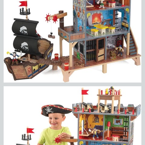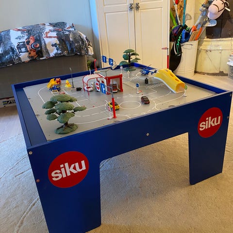 Kidcraft tågbord med förvaringslådor. Även tog och räls ingår. Bordet är anpassat för lek med trätåg och tillbehör och har en lekplatta med tryckt landskap. Under bordet finns röda plastlådor för förvaring av räls, tåg och andra leksaker. Konstruktionen är med rundade hörn för stabil och trygg lek. Passar för barn som vill ha en samlad plats för tågbanor och annan bygglek.
