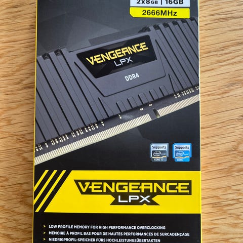 Corsair Vengeance LPX RAM-minne DDR4 med total kapacitet på 64 GB, fördelat på 2 moduler om 32 GB vardera (2x32 GB). Minnet har en hastighet på 3200 MHz. Lågprofilskylare i aluminium för bättre värmeavledning. Passar stationära datorer med DDR4-minnesplatser och stöd för 3200 MHz minneshastighet.
