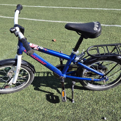 Crescent barncykel med 16" hjul. Cykeln har ram i orange färg och är avsedd för barn. Utrustad med framgaffel, styre och sadel anpassade för barnstorlek. Passar för vardagscykling och lek på cykelvägar och gårdsplaner.