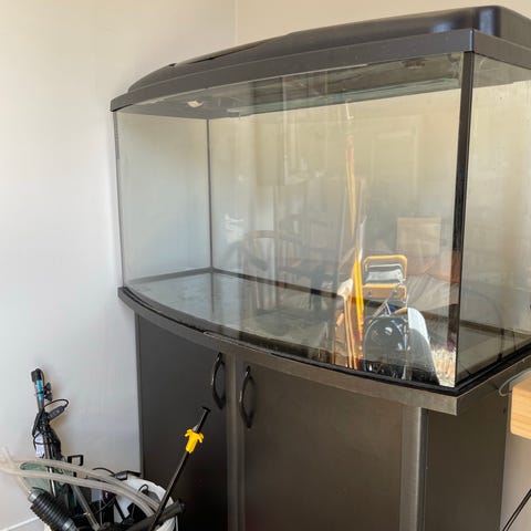 Säljer ett mycket fint och unikt akvarium inbyggt i en specialdesignad möbel formad som ett hus. Perfekt för dig som vill ha något utöver det vanliga – både akvarium och inredningsdetalj i ett.