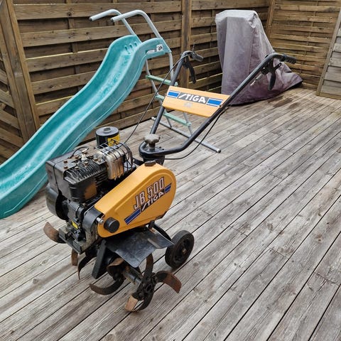 Meec Tools Rotavator jordfräs med en motoreffekt på 2,5 kW. Arbetsbredd 550 mm och arbetsdjup 130 mm. Varvtal 3000/min och vikt 33 kg. Ljudnivå 93 dB. Maskinen är bensindriven och har roterande fräsknivar framtill samt handtag med reglage för körning. Lämplig för fräsning och bearbetning av jord i trädgårdsland och mindre odlingsytor.