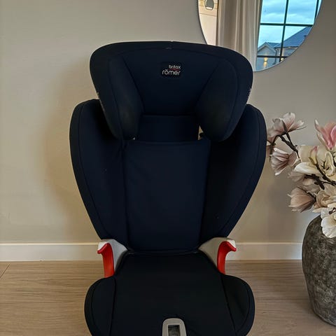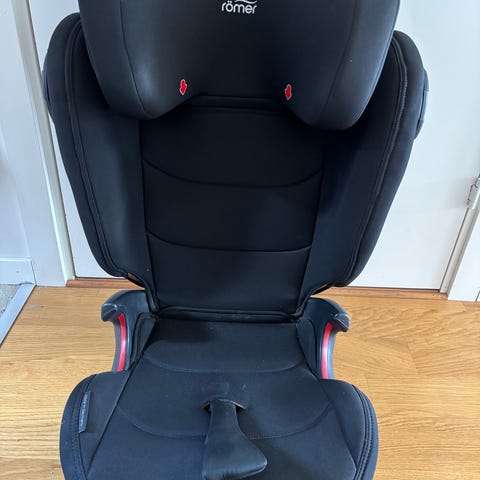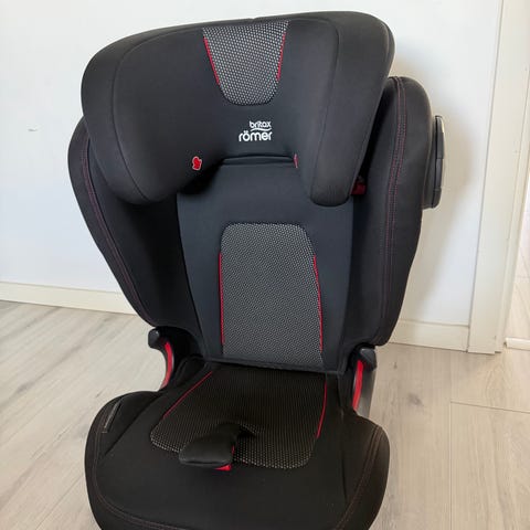 Britax Römer Kidfix S bälteskudde för barn upptill 36 kg. Bilbarnstolen är utformad för användning med bilens trepunktsbälte och har hög rygg med sidokrocksskydd. Modellen är godkänd enligt ECE R44/04 för barn med vikt 15–36 kg. Klädseln är i mörk färg och stolen har justerbart ryggstöd för att passa barnets längd. Lämplig som framåtvänd bältesstol i bilens baksäte.