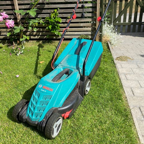 Black & Decker gräsklippare i grön färg med orange hjul. Modellen är en eldriven gräsklippare avsedd för klippning av gräsmatta i trädgård eller mindre grönytor. Gräsklipparen har uppsamlare baktill för insamling av klippt gräs. Passar för normal hemmabruk på plana ytor. El driver
