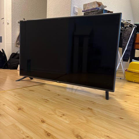 Sharp full HD tv. Platt-tv med skärm monterad på bordsstativ. Lämplig för användning i vardagsrum eller sovrum för tv-tittande och streaming av film och serier. Ej smart tv. Har ej fjärrkontroll till.