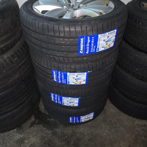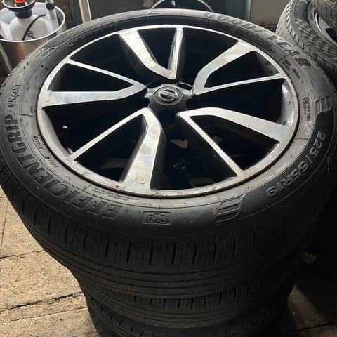 Däcken är i OK skick. Fälgarna är som nya men ett mindre skav på en fälg.