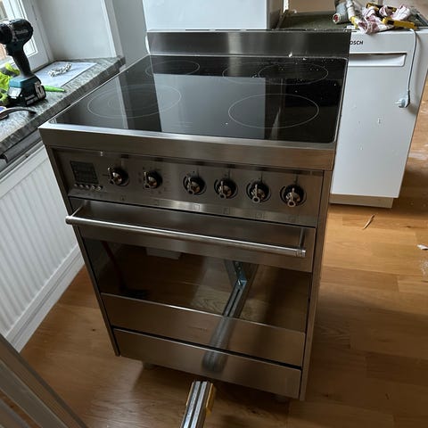 Ilve gasspis med flera brännare och ugn. Spisen har rostfri topp med gjutjärnsgaller och front i svart utförande med vred på framsidan. Ugn med glaslucka och flera ugnsnivåer för olika typer av matlagning. Medföljer separat stekbord/plancha i metall som kan användas ovanpå spisen. Passar för kök där man önskar gasspis med ugn i en fristående enhet.