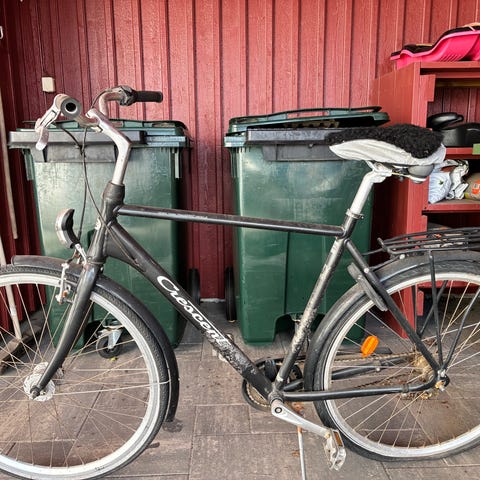 Fin herrcykel med nya däck och innerslangar värde 500 kronor samt arbete. 7 växlad via handtaget. Fotbtoms. Dokument som visar att cykeln är ärligt köpt
