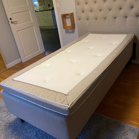 Två stycken sängar säljes. Mått: 90x200 cm. Bäddmadrass ingår om så önskas. Ekben. Hämtas på plats. 300kr styck, Båda för 500kr.