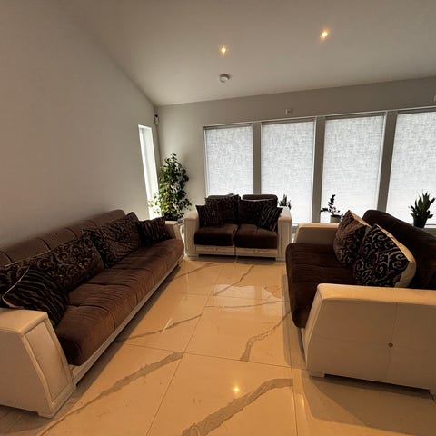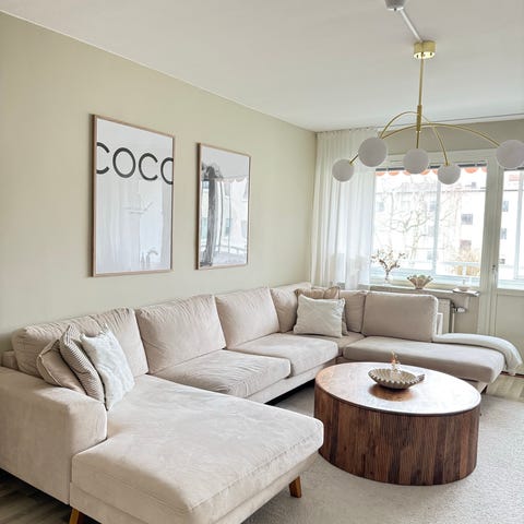 Vi säljer vår fina soffgrupp som är cirka 2 år gammal. Sofforna är i använt skick, men är fortfarande fräscha och välskötta. De har en elegant beige färg med fina gulddetaljer som ger ett stilrent och exklusivt intryck i vardagsrummet.
