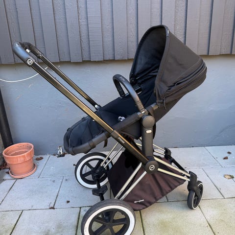 En fin ligg och sittvagn från cybex. Finns varukorg som är sönder på sidan, finns bild. Det finns tre små fläckar på skärmen, finns bild. Man får regnkappa till barnvagnen, svart vinteråkpåse till.