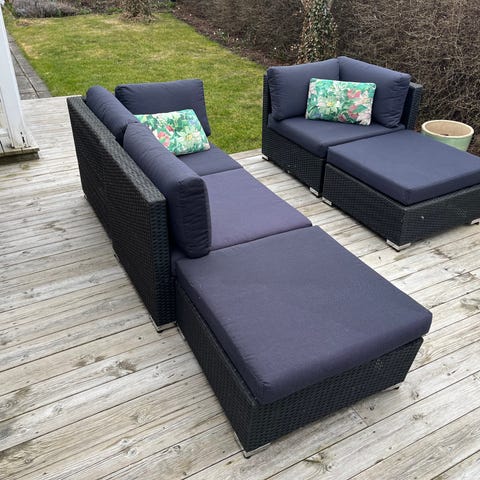 Utemöbel Loungeset Maxime, inköpt på Mio. Har stått i uterum och varit väl skyddad.