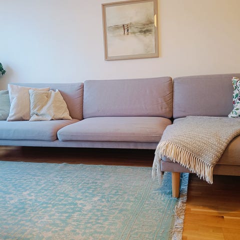 Säljer min fina soffa pga flytt. Som helhelt fin men katt har funnits i hemmet, så lite klösmärken syns på ryggstödet (se foto). Ändå fin, rymlig och bekväm soffa! Köpt 2019.