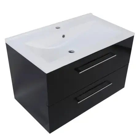 Kommoden har förvaring bakom luckor/lådor och är avsedd för montering mot vägg. Tvättstället är integrerat i ovandelen och har ett engreppsblandare i krom samt avloppsanslutning. Passar som komplett lösning för badrum med behov av kommod och tvättställ i ett.