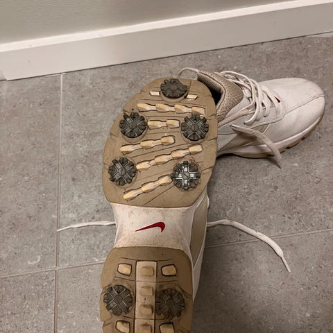 Säljer en golfsko av märket Nike, svart med vit sula. Skorna har snörning och ovandel i meshtextil för god ventilation. Yttersulan har mönstrad undersida för bra grepp på golfbanan. Storlek 37,5.