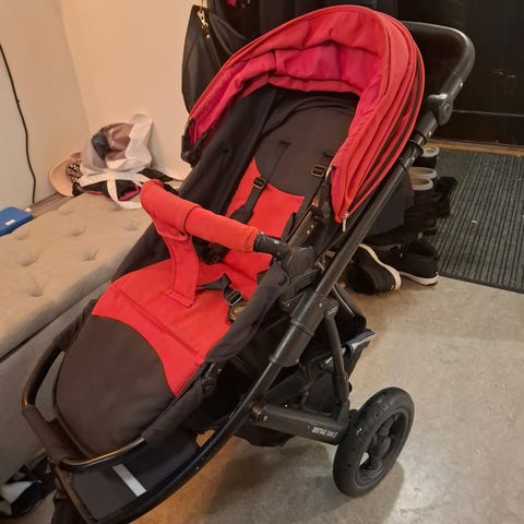 Sittdel och liggdel, skötväska ingår. Mycket sparsamt använd.