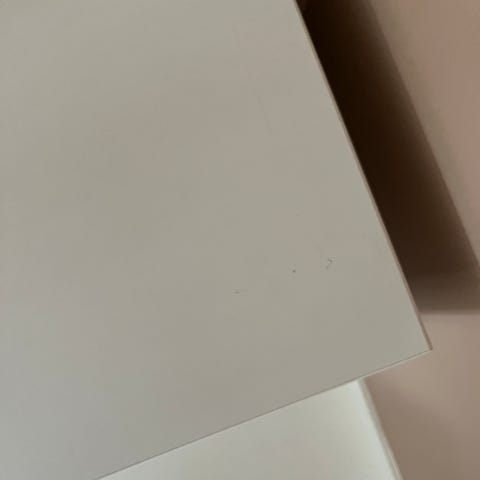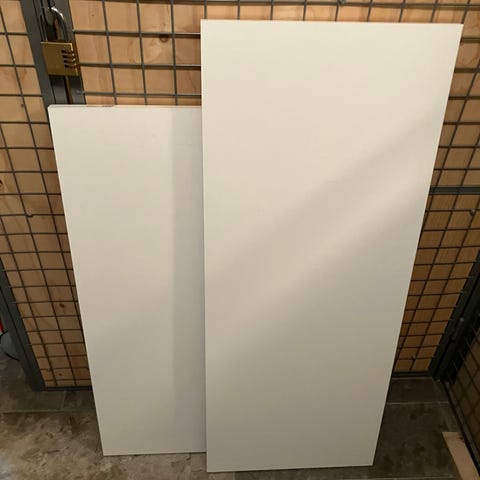 String hyllplan i vitt, formgivna av Nils Strinning. Hyllplanen är avsedda för String-hyllsystem och monteras med medföljande metallbeslag. 78x30 cm har lite märken.