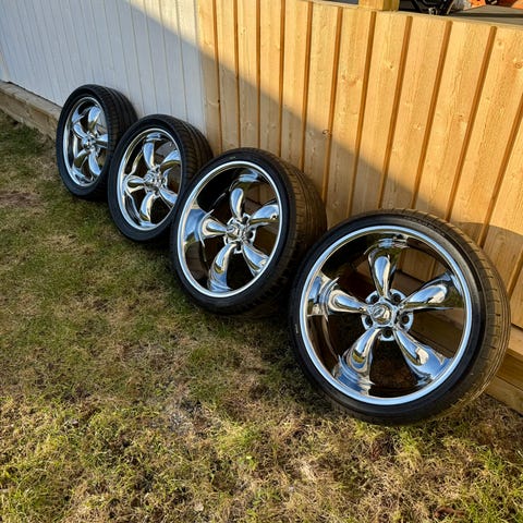 4 stycken ridler polish 22". 22x9 et 15 stora GM 5x5 , 5x127 med 265-35-22 däck runtom.
