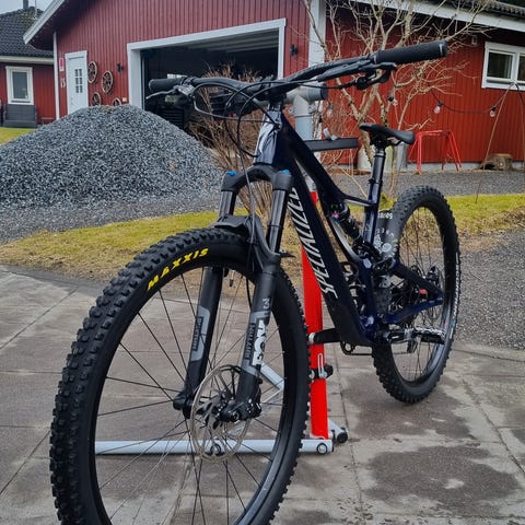 Inköpt på Specialized Concept Store i Göteborg, oktober 2019 och har sedan dess rullat på tekniska stigar i skogarna runt Torslanda, Göteborg. Kör sedan ett tag tillbaka med annan modell varför denna stått oanvänd sedan augusti 2024 (tjugofyra). Nyservad i september 2025 (tjugofem) och har inte rullat en endaste meter efter det.