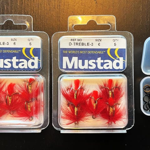 Säljer 6 st paket med nya göskrokar av modell Westin roundup. 2 st paket 5/0 25g, 2 st paket 6/0 30g och 2 st paket 6/0 35g. Ingår även 2 st paket med passande nya Fin-S vertikaljiggar 7 tum (en nallad från ett paket). Nypris ca 600